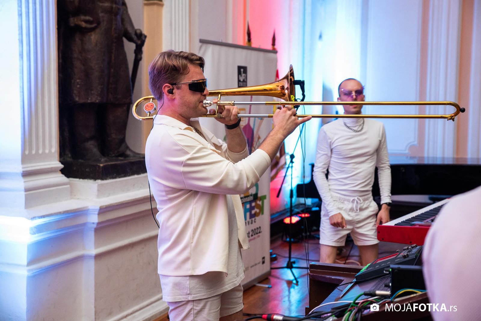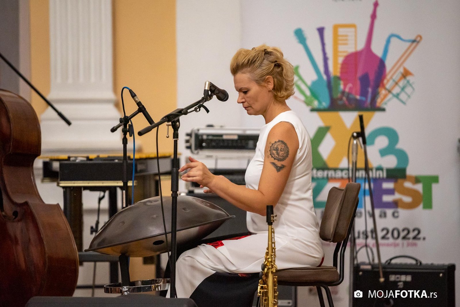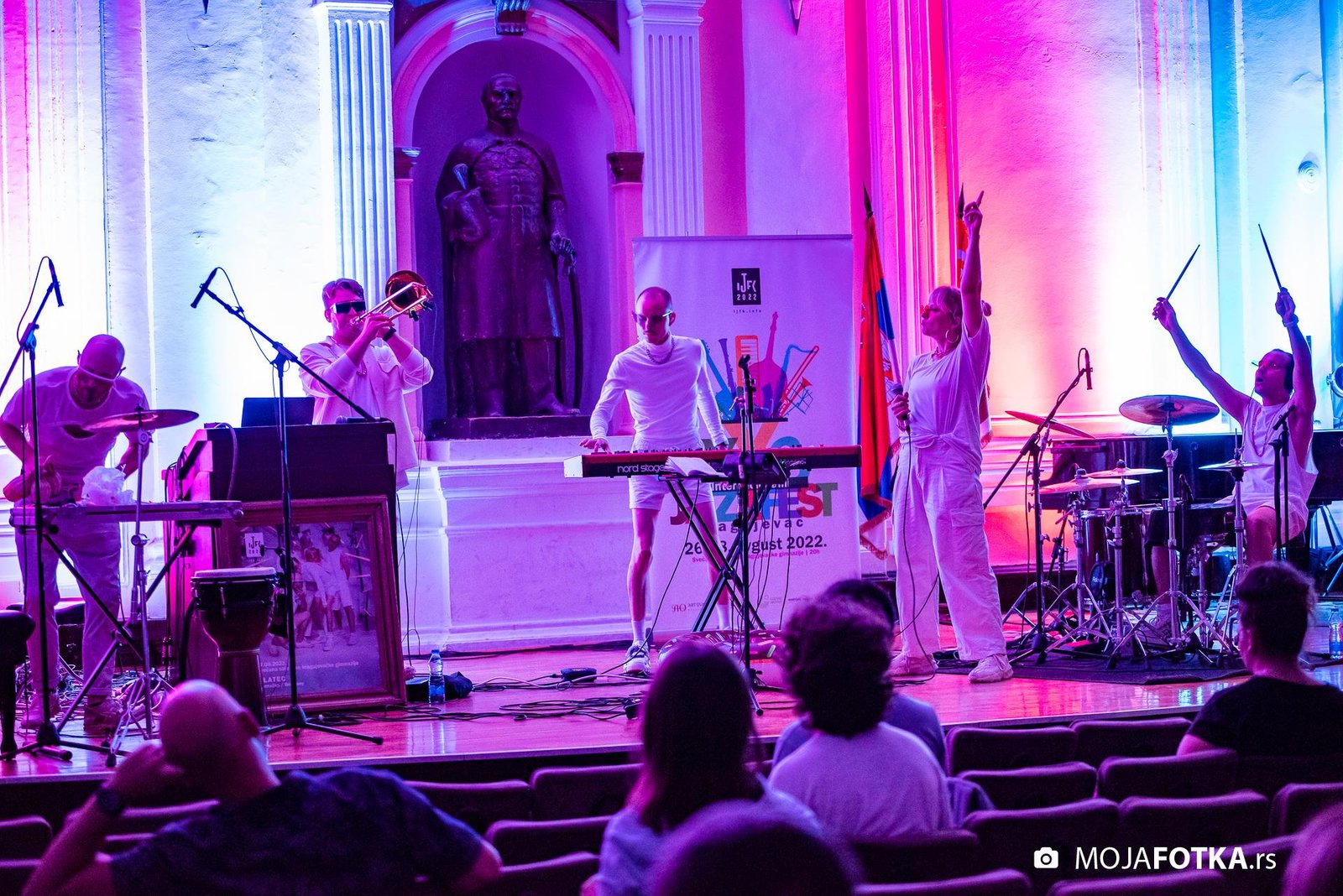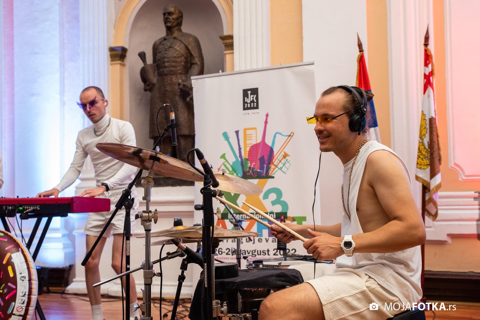 Fotografisanje 23. Internacionalnog džez festivala, koji je održan od 26-28. avgusta 2022. godine u svečanoj sali Prve kragujevačke gimnazije u Kragujevcu. Nastupili su: Miško Plavi Trio u sastavu Miško Plavi, Vasil Hadžimanovi i Miroslav Tovirac (Beograd), Slatec (Nemačka), Jasna Jovićević u sastavu Quinary (Beograd) i Antonie & Off Ground Ensemble, (Severna Makedonija)