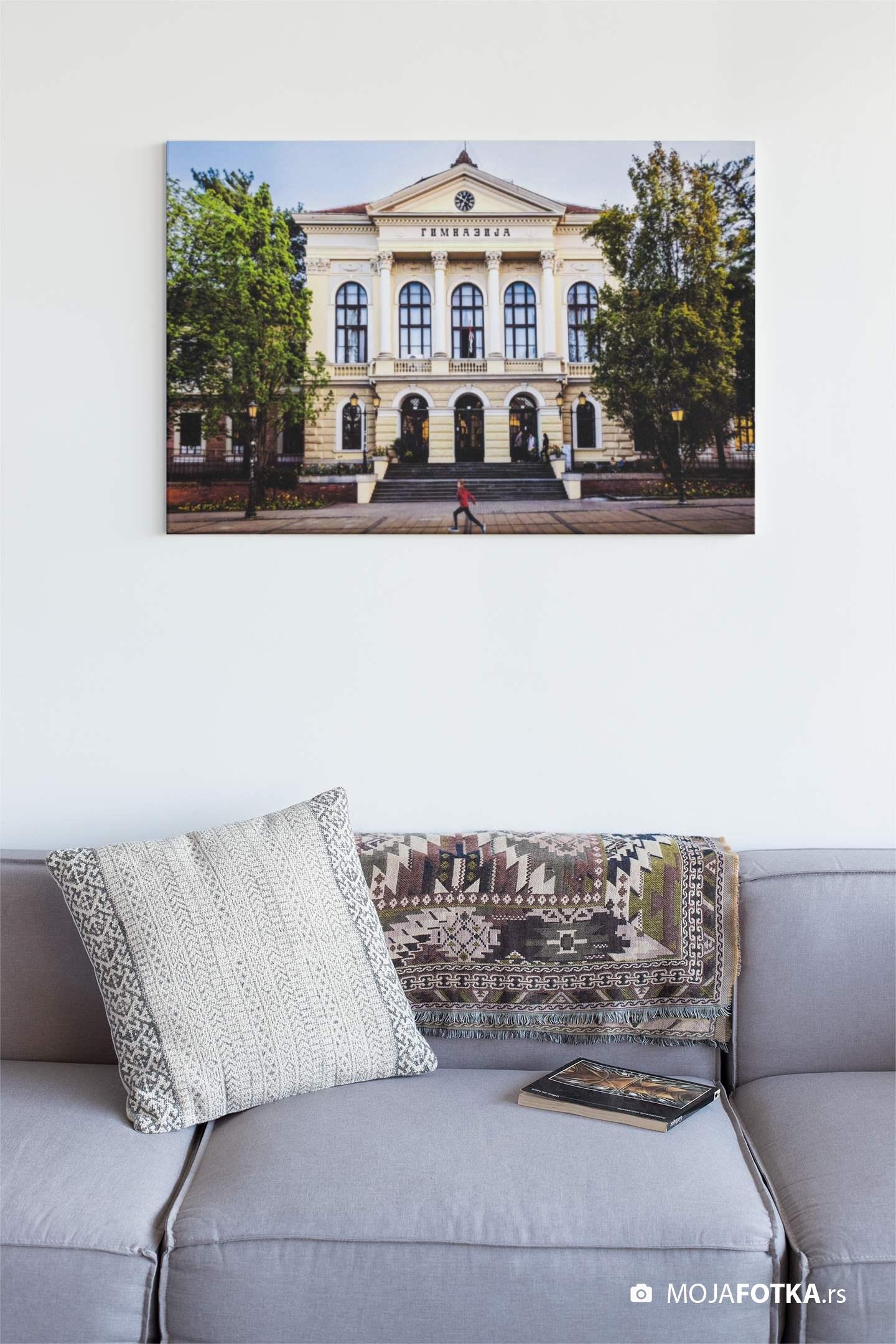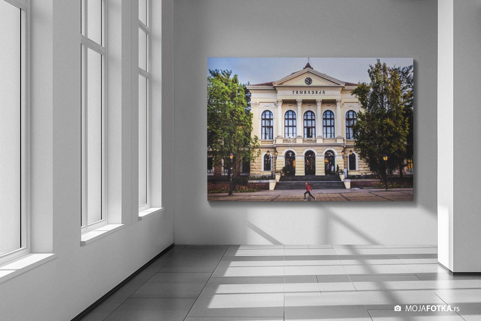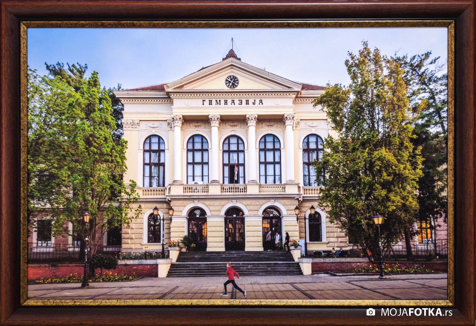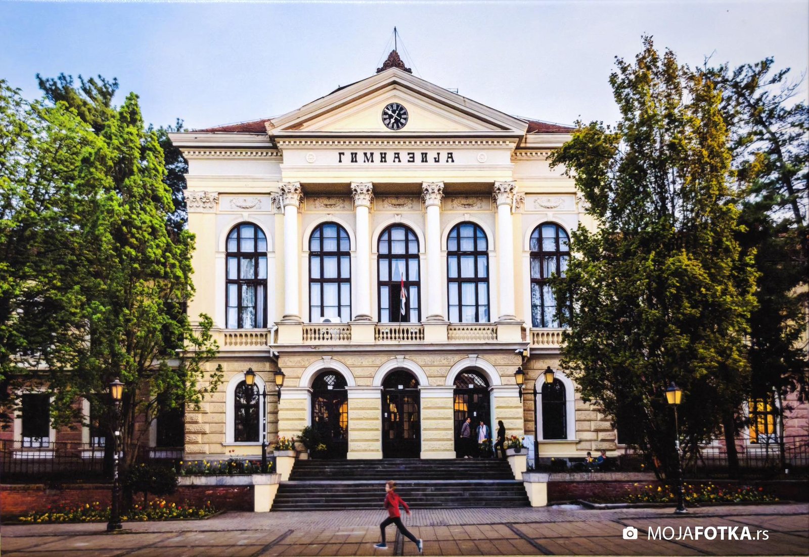 Fotografija Prve kragujevačke gimnazije i Đačkog trga nastala 2024. godine.